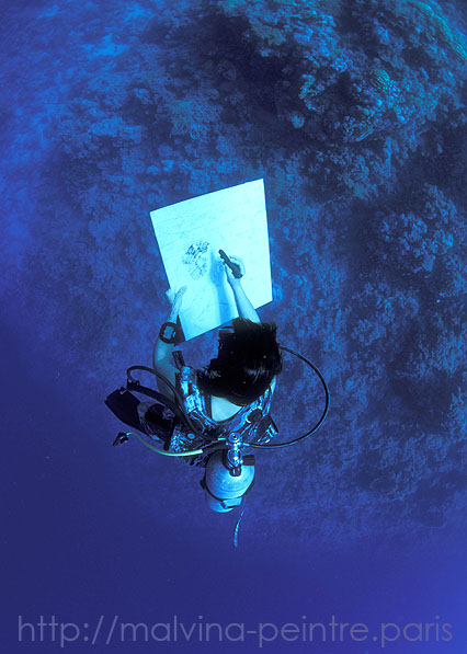 Plasticienne, exploratrice et plongeuse, Malvina développe une discipline artistique méconnue « La peinture subaquatique », qui évolue en interaction avec l’océanographie, les neurosciences et les nouvelles technologies hyperbares. Riche d’une expérience de 25 ans dans ce domaine, elle souhaite poursuivre ses recherches et transmettre aux nouvelles générations cette discipline naissante.