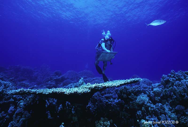 Peinure en imersion de Malvina, sur les coraux, Photo de Pozzoli
